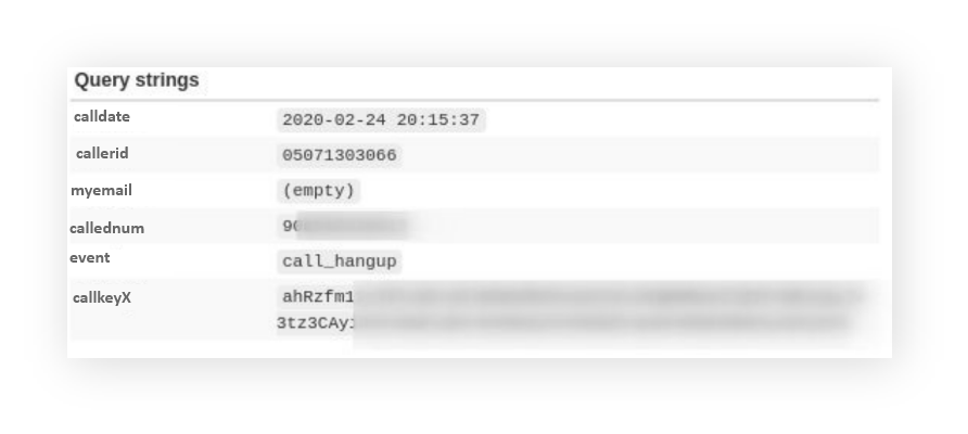 If the transmitted information is not sufficient, the variables related to the call can be reached by sending a request to the CDR API with the activecallkey information.